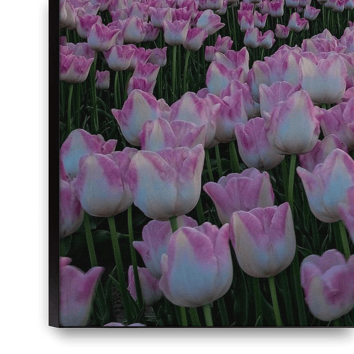 Bestelle dieses Blumen-Wandbild Sonnenuntergang über Tulpenfeld von Kok and Kok als Reproduktion auf Leinwand, Alu-Dibond, als Poster, Fototapete oder Acrylglasbild.