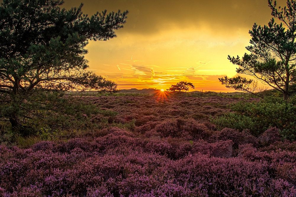Wanderung durch die Schoorl-Dünen. Diese Route führt Sie durch die schönsten Moore des Dünengebiets. Folgen Sie der violetten Route vom Outdoor-Zentrum aus.