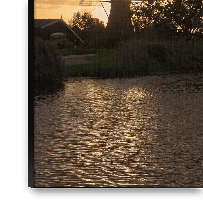 Bestelle dieses Landschafts-Wandbild Sonnenuntergangs-Mühlen von Henriëtte Wanders als Reproduktion auf Leinwand, Alu-Dibond, als Poster, Fototapete oder Acrylglasbild.