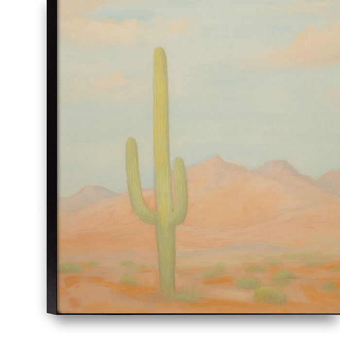 Ein farbenfrohes digitales Gemälde der Sonoran-Wüste in Amerika. Das Werk verleiht Ihrem Interieur einen verträumten und klassischen Look!