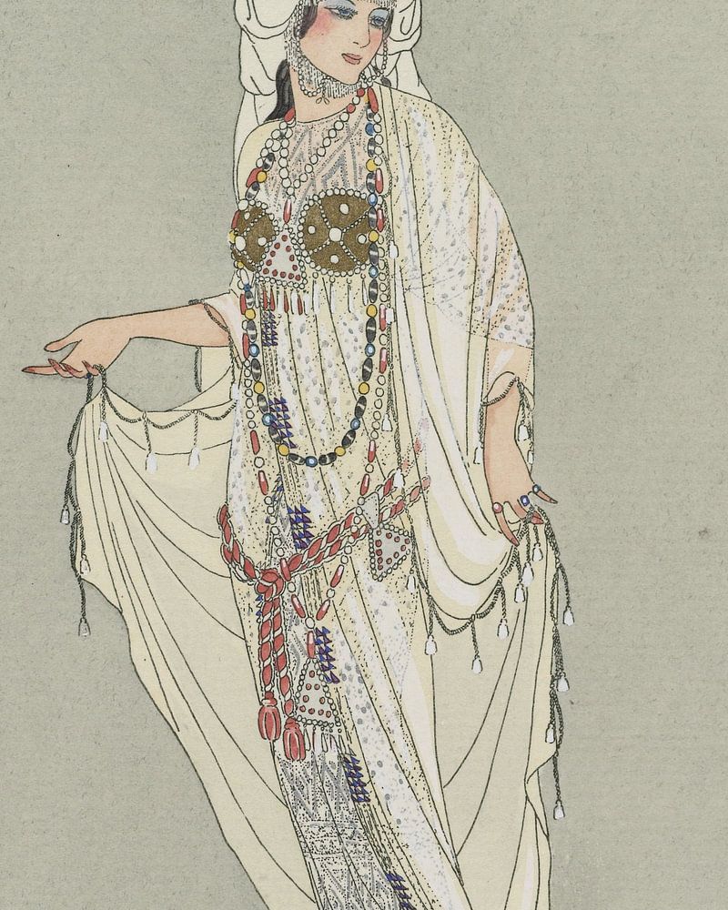 Ein historischer Modedruck mit einem modernen Twist: "Sophonisbe. Inspiriert vom Art Deco, einer Stilrichtung, die in den 1920er Jahren entstand. New Businessmanship gemischt mit modernen klaren Linien und Farben.
