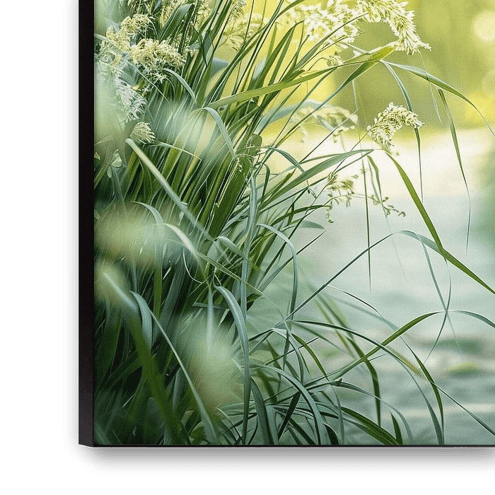 Dieses Kunstwerk ist in sommerlichen Farben wie Grün und Gelb gehalten, mit einem weichen, verträumten Hintergrund. So entsteht das Gefühl eines warmen Sommertages, als ob Sie barfuß durch das Gras laufen würden.
