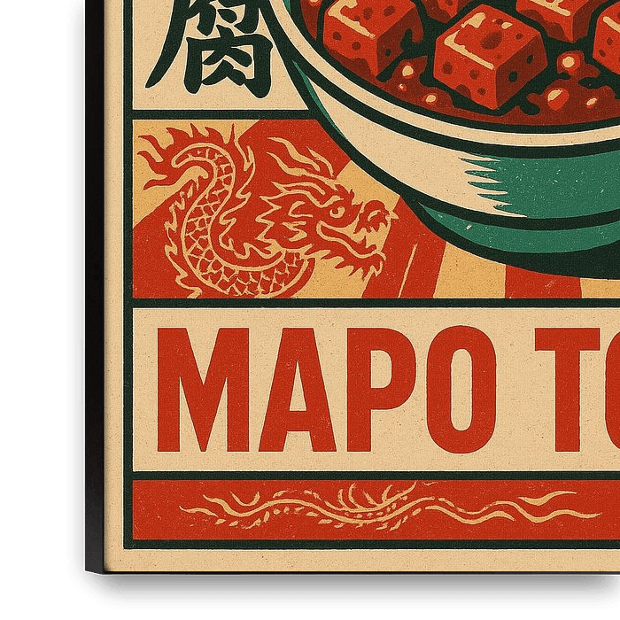 Bestelle diese Illustration Spicy Mapo Tofu Print - Retro-Stil asiatisches Essen Illustration von Travel Shop als Reproduktion auf Leinwand, Alu-Dibond, als Poster, Fototapete oder Acrylglasbild.