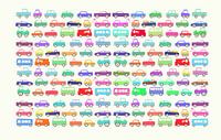 Kunst für Kinder. Ein Auto ist noch schöner als das andere. Sie alle gehen ihren eigenen Weg. Das Feuerwehrauto, der Traktor, der Bus, der Abschleppwagen, die Limousine und der Kleinwagen. Schön für das Kinderzimmer.