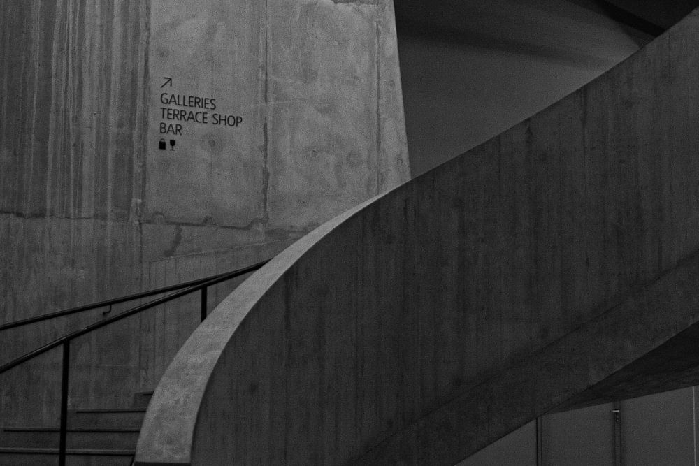 Eine schöne Komposition einer Wendeltreppe im Museum Tate Modern in London, England. Das Foto hat eine industrielle Atmosphäre. Dieses Bild ist auch in Farbe erhältlich. Sie finden es in meinem Shop.