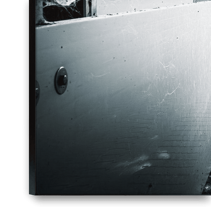 Bestelle das Foto Spinnennetze in einem verlassenen Stallgang von InfiniteArtLabs als Reproduktion auf Leinwand, Alu-Dibond, als Poster, Fototapete oder Acrylglasbild.