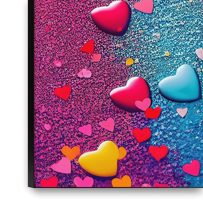 Ihre gewählte Kunst auf Leinwand, gespannt in einem Aluminiumrahmen. Schnell und einfach austauschbar für eine frische Ausstrahlung und ganz nach Ihren Wünschen.