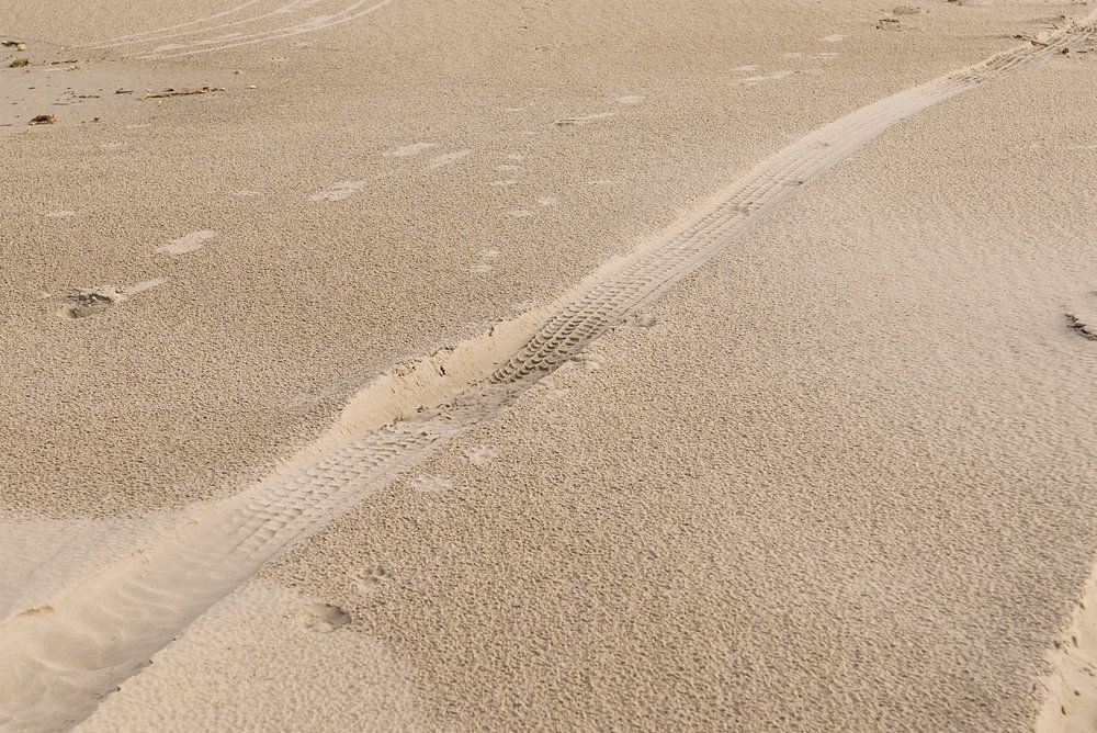 Sporen in het Noordzeestrand van het eiland Terschelling
