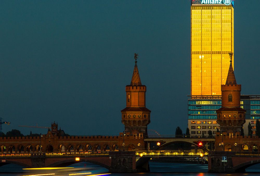 Spree an der Oberbaumbrücke, Berlin zum Sonnenuntergang.