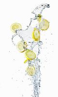 zitrone, zitronen, zitronenscheiben, spritzen, gelb, zitronengelb, frisch, frisch, erfrischend, durstlöschend, spritzen, spritzen, Tropfen, Wasser, Sommer, Aktion, dynamisch