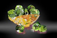 Stillleben von Keimlingen, die digital aus einer Collage von Paketen zusammengesetzt sind