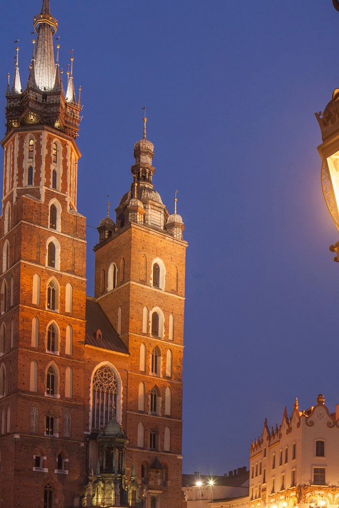 Marienkirche, Hauptmarkt, Altstadt, Abenddämmerung, Krakau, Polen