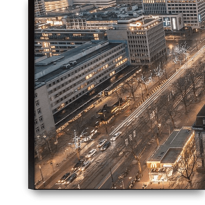 Ihre gewählte Kunst auf Leinwand, gespannt in einem Aluminiumrahmen. Schnell und einfach austauschbar für eine frische Ausstrahlung und ganz nach Ihren Wünschen.