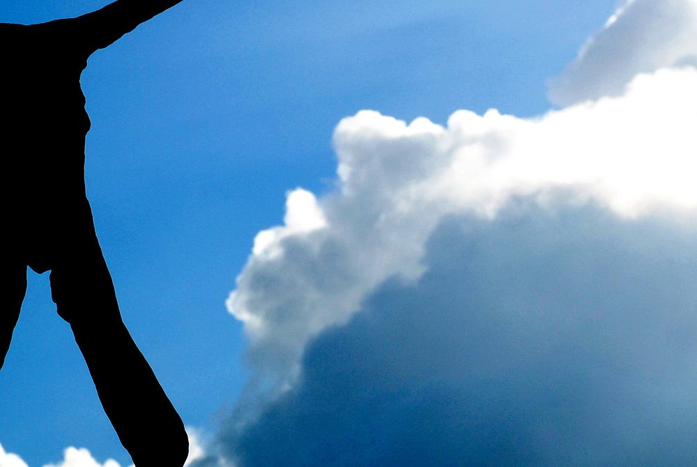 De Denkende Haas van beeldend kunstenaar Barry Flanagan overziet de Neude op een mooie zonnige maar bewolkte dag.