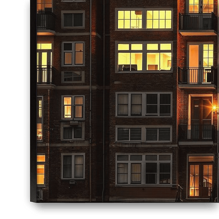 Urban Voyeur ist ein faszinierendes Kunstwerk, das die menschliche Faszination für das alltägliche Leben der anderen einfängt. Es zeigt ein nächtliches Wohnhaus, in dem der warme Schein der beleuchteten Fenster Einblicke in intime Momente und Leben gewährt. Jedes Fenster erzählt seine eigene Geschichte, von einer einsamen Figur bis hin…