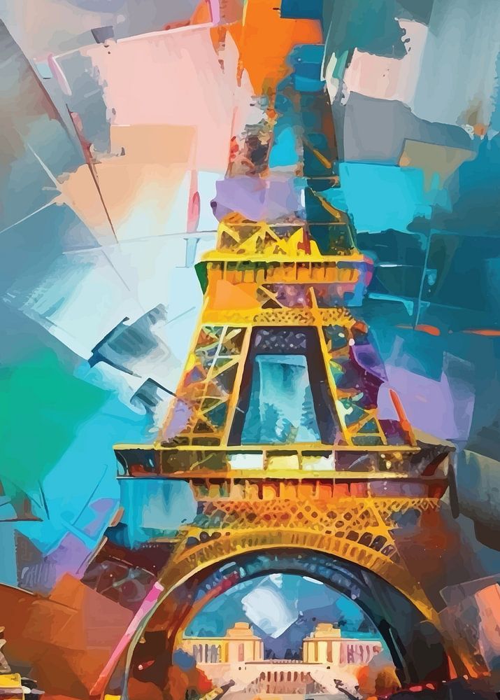Fangen Sie die pulsierende Energie von Paris mit diesem farbenfrohen und abstrakten Gemälde des Eiffelturms ein. Die kräftigen Pinselstriche und lebhaften Farben schaffen eine dynamische und aufregende Atmosphäre.