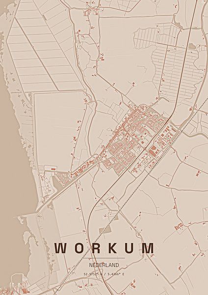 Bestelle dieses Landschafts-Wandbild Stadtplan von Workum von Stef van Campen als Kunstdruck auf Leinwand, Alu-Dibond, als Poster, Fototapete oder Acrylglasbild.