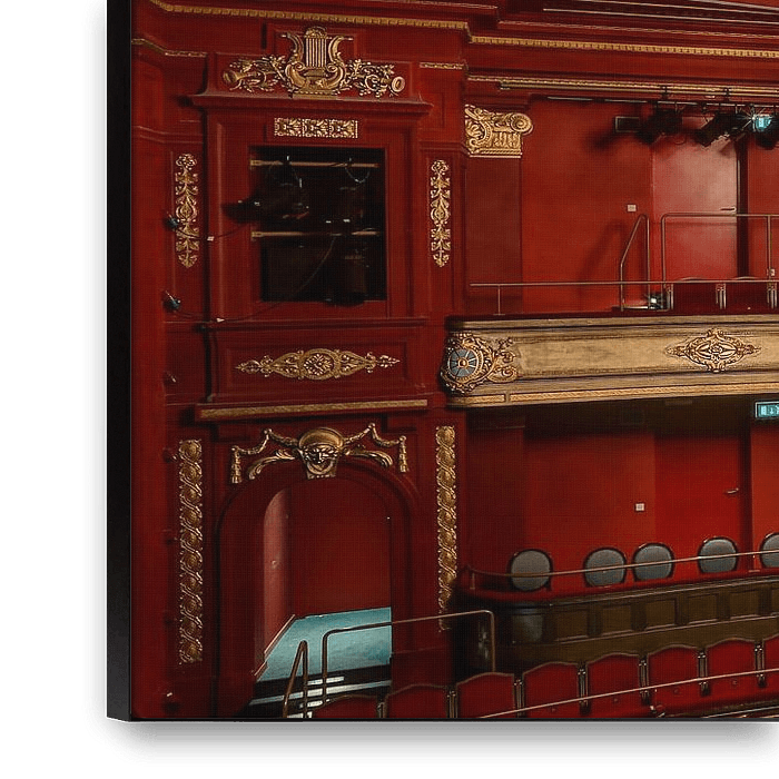 Theater der schönen Lampe an der Decke des Stadttheaters von Haarlem. Ein Filter wurde verwendet, um den Stereoeffekt der Kristalle zu erzeugen.
