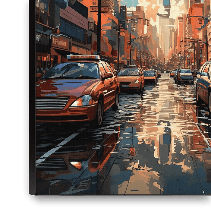 Eine lebendige Sammlung von Kunstwerken, die ein lebhaftes Bild des vielfältigen und dynamischen Gewebes des städtischen Lebens zeichnet. Jedes Stück ist ein einzigartiges Fragment, das zur kaleidoskopischen Schönheit beiträgt, die das Treiben des Stadtlebens definiert.