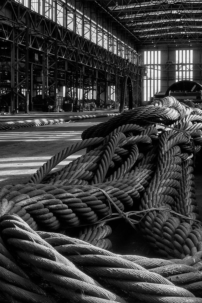 Stahlkabel fotografiert im ehemaligen U-Boot-Schuppen RDM in Rotterdam.