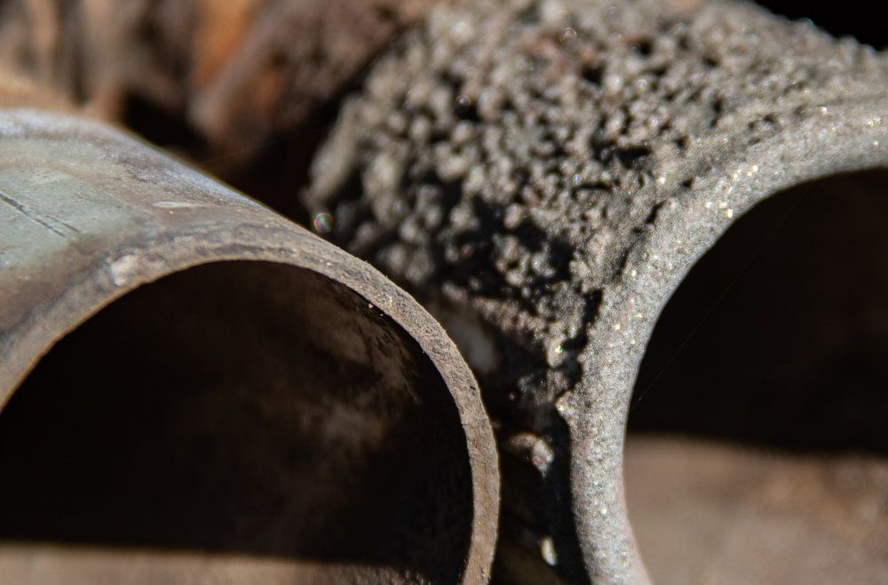 Industriële stalen pijpconstructie op het Landschaftspark in Duisburg-Nord.