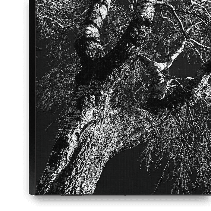 Bestelle dieses Blumen-Wandbild Stamm und Äste der Birke im Winter in schwarz-weiss von Dieter Walther als Reproduktion auf Leinwand, Alu-Dibond, als Poster, Fototapete oder Acrylglasbild.