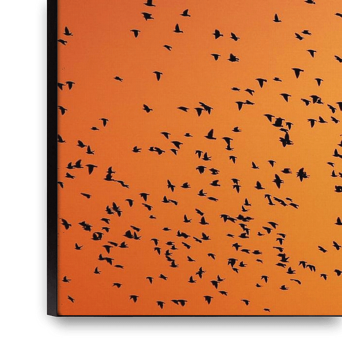 Bestelle dieses Vögel Wandbild Stare in der Luft von Marga Vroom als Reproduktion auf Leinwand, Alu-Dibond, als Poster, Fototapete, ArtFrame oder Acrylglasbild, maßgefertigt in höchster Qualität.