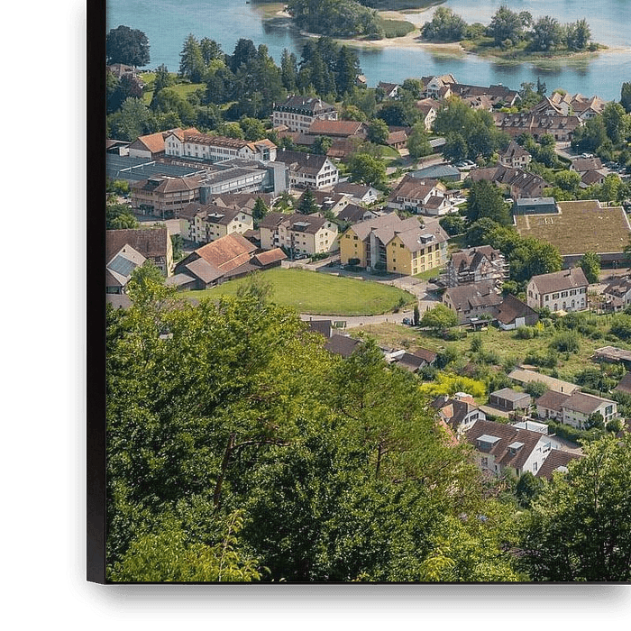 Ihre gewählte Kunst auf Leinwand, gespannt in einem Aluminiumrahmen. Schnell und einfach austauschbar für eine frische Ausstrahlung und ganz nach Ihren Wünschen.