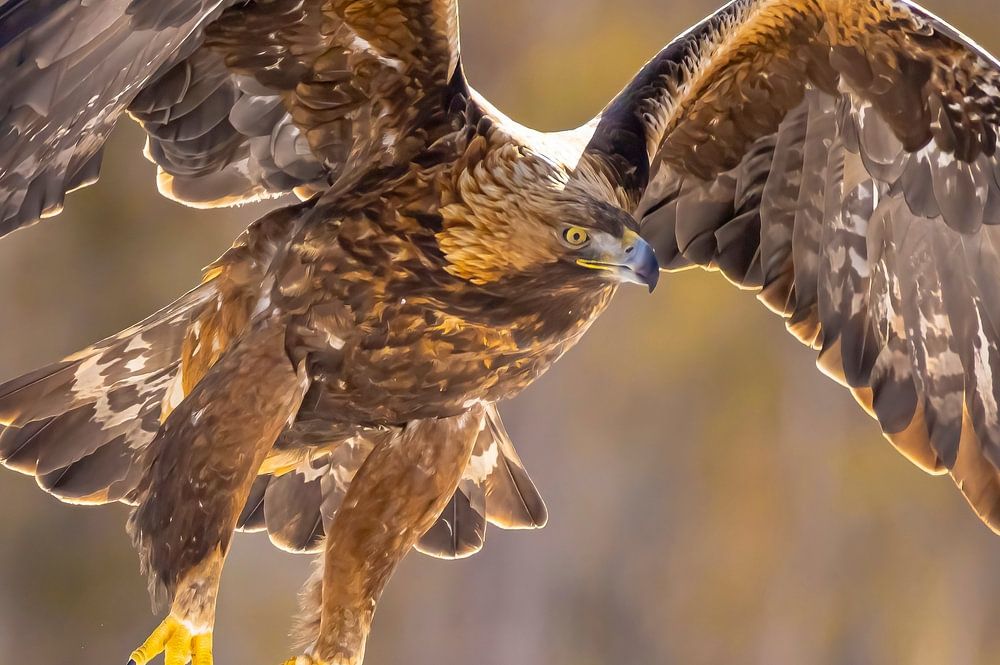 Der Steinadler (Aquila chrysaetos) ist einer der größten und beeindruckendsten Raubvögel der nördlichen Hemisphäre. Mit einer Flügelspannweite von 185 bis 220 Zentimetern und einem Gewicht von bis zu 6,5 Kilogramm ist er ein kraftvoller Jäger, der für seine Schnelligkeit, seinen scharfen Blick und seine Eleganz in der Luft bekannt ist. Der Vogel hat ein dunkelbraunes Gefieder mit einem goldbraunen Schimmer auf dem Hinterkopf und im Nacken, woher er auch seinen Namen hat.
