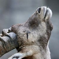 Der Steinbock hob kurz den Kopf als wolle er frische Luft schnuppern. So entstand dieses ungewöhnlich Profilbild, dessen Hintergrund farblich sehr gut mit dem Steinbock harmoniert.