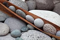 Graue Steinreihe in einem Palmblatt