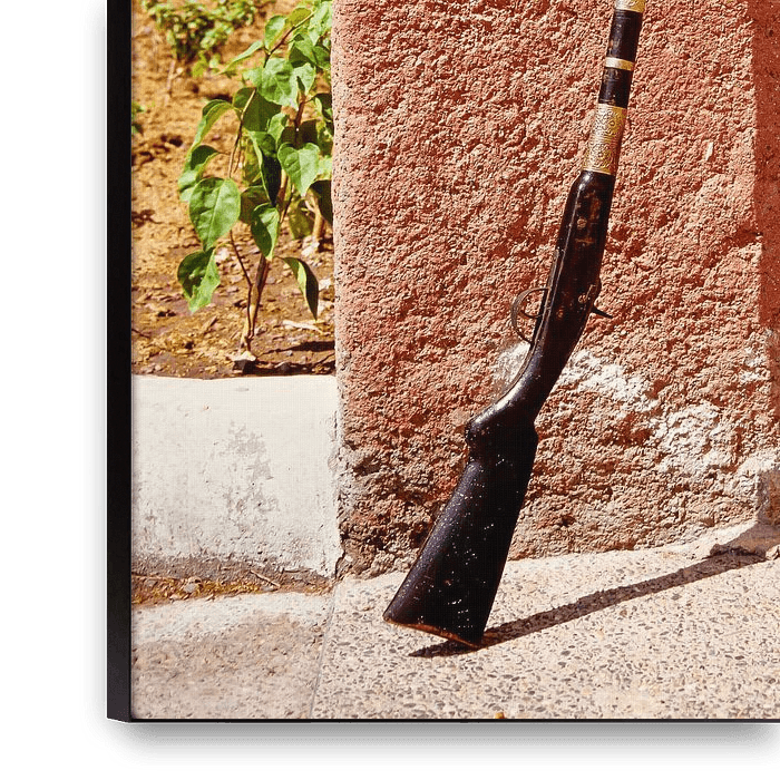 Marokkanisches Reitergewehr lehnt an Hauswand.