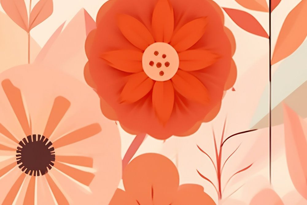 Stylised Flora Art - Dieses Kunstwerk besticht durch eine gemütliche Farbpalette aus Pfirsichflaum und ergänzenden warmen Erdtönen, die stilisierte Blumenmotive in einem modernen grafischen Design zusammenbringt. Die abstrakten, aber dennoch erkennbaren floralen Formen sorgen für ein verspieltes und modernes Gefühl, das perfekt ist, um einem Raum sowohl Ruhe als auch Charakter zu verleihen.