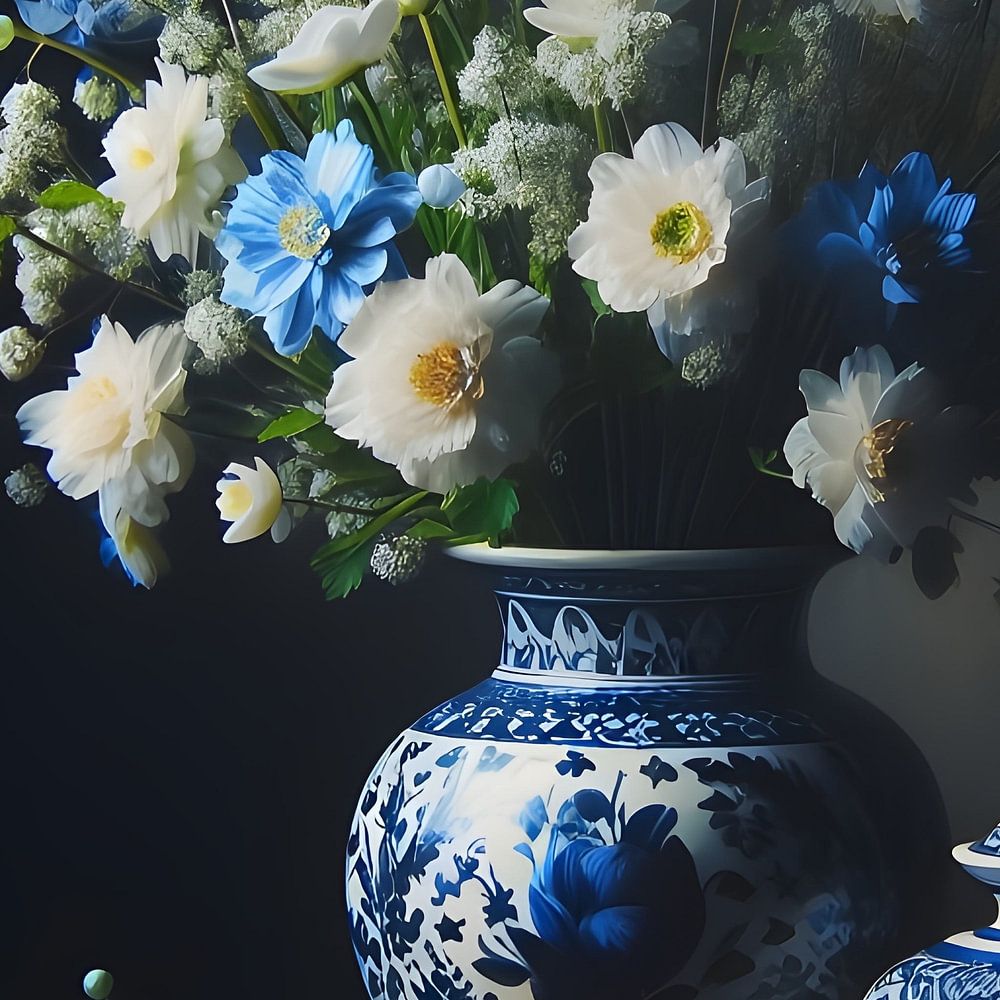 Stilleben; Delfter Blau Vase mit weißen und blauen Blumen
