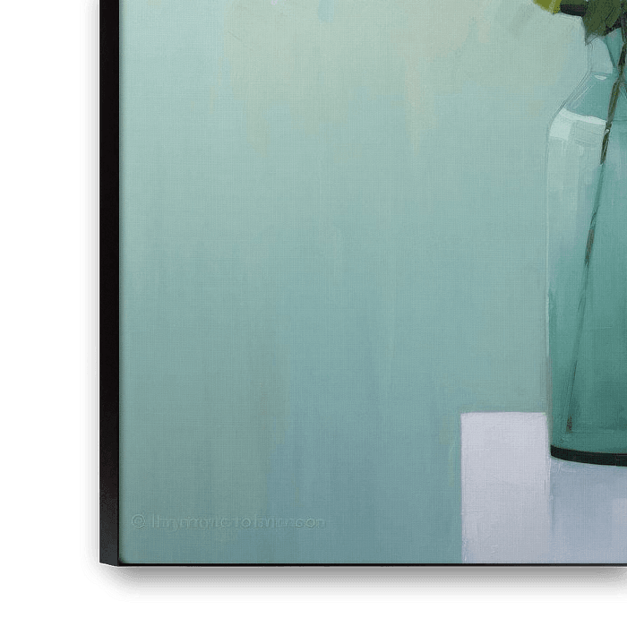 Stilleben einer Vase mit weißen Blumen. Wählen Sie die Größe und das Material selbst und machen Sie dieses Werk ganz passend für Ihr Interieur. Dies ist ein besonderer Blickfang.