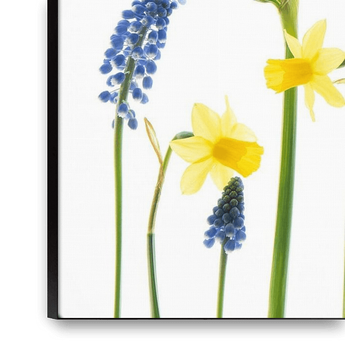 Bestelle dieses Blumen-Wandbild Stilleben mit Narzissen und blauen Weintrauben von Francis Dost als Reproduktion auf Leinwand, Alu-Dibond, als Poster, Fototapete oder Acrylglasbild.