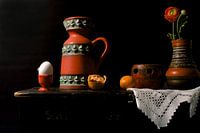 Stilleben mit orangefarbenem Retro-Zeug aus den 70er Jahren. Die Fotografie.