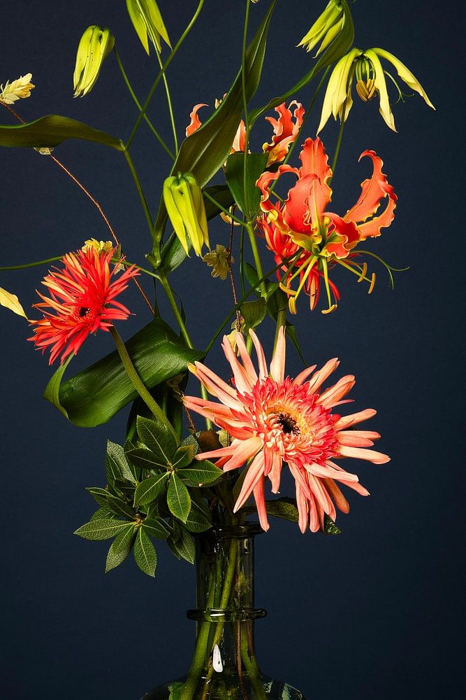 Stilleben mit Blumen und Glasvase
