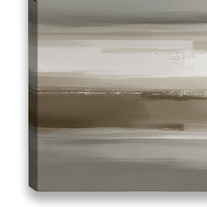 Minimalistische, abstrakte Landschaft in Greige, Beige und Salbeigrau. Sanfte Pinselzüge und ruhiger Horizont – zeitlose Wandkunst für Wohn-, Schlaf- und Arbeitsräume.