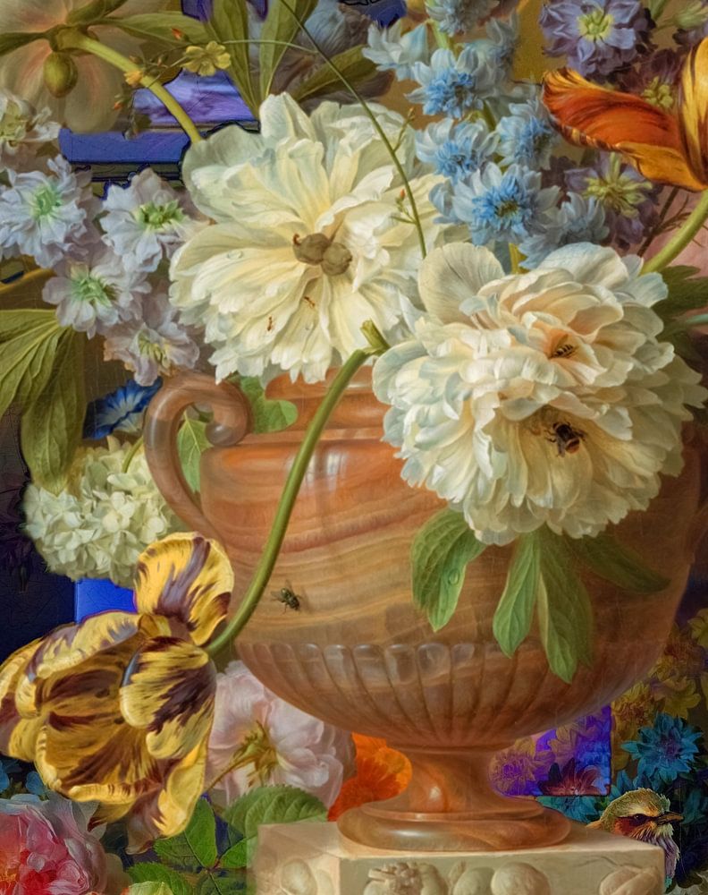 Stilleben Chic. featuring Stilleben von Cornelis van Spaendonck Blumenstilleben mit Alabastervase 1783 und dem berühmten Parfümflakon. Kunst mit Pfiff. Kundenfoto ist willkommen. erstellt von Gisela.