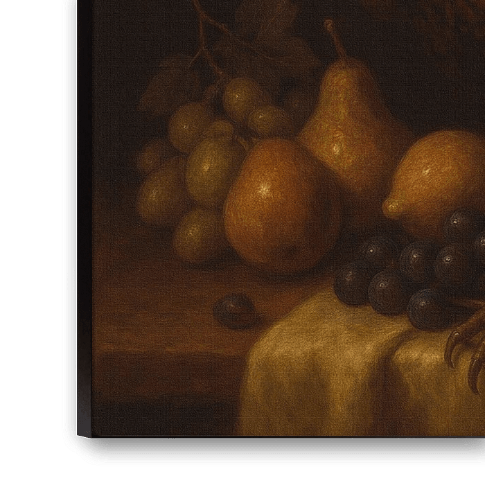 Eine zeitgenössische Parodie auf das klassische Jagdstillleben. In einer warmen Szene voller Trauben, Zinn und Textilien sitzt ein stolzer Fasan im Abendlicht und genießt seinen Wein. Elegant und absurd zugleich - ein Stillleben mit Noblesse.