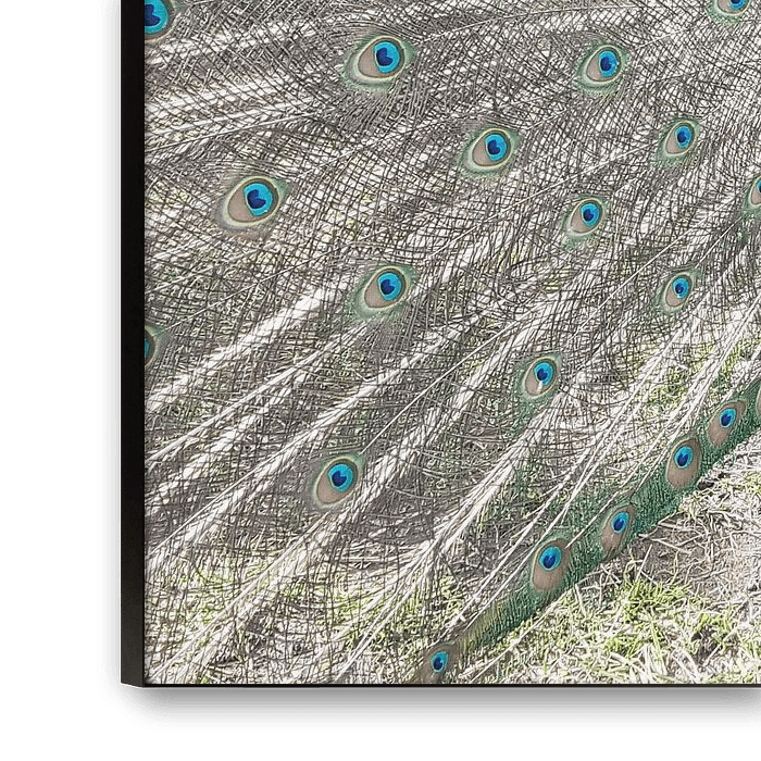 Stolz wie ein Pfau. Hier zeigt dieses farbenprächtige Tier seine Federn in ihrer ganzen Pracht. Dieses Bild wird Farbe in Ihr Interieur bringen.