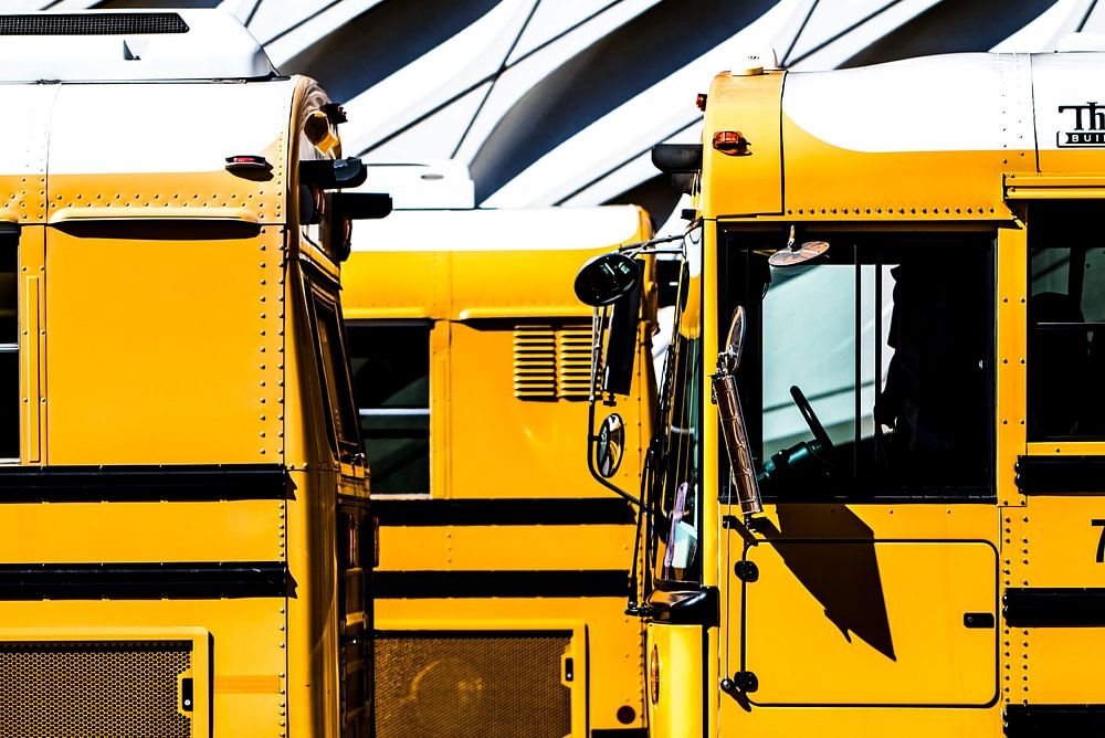 Schulbusse vor dem Museum "The Broad" in Los Angeles