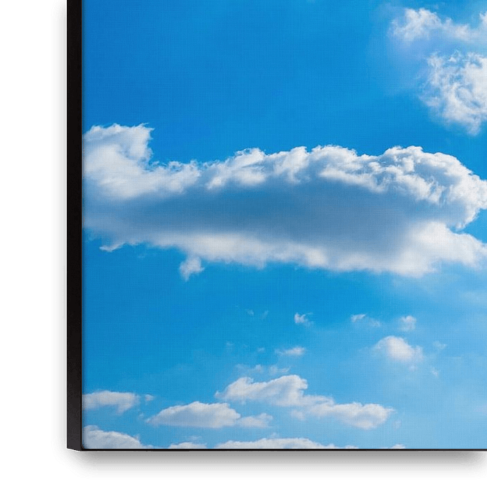 Ihre gewählte Kunst auf Leinwand, gespannt in einem Aluminiumrahmen. Schnell und einfach austauschbar für eine frische Ausstrahlung und ganz nach Ihren Wünschen.
