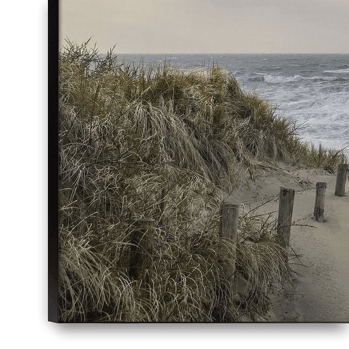 Bestelle dieses Landschafts-Wandbild Strand, Meer und Sonne an einem stürmischen Abend! von Dirk van Egmond als Reproduktion auf Leinwand, Alu-Dibond, als Poster, Fototapete oder Acrylglasbild.