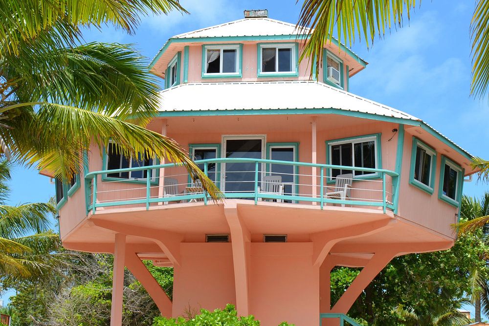 Beeindruckendes rosa Strandhaus auf Caye Caulker Belize Mittelamerika