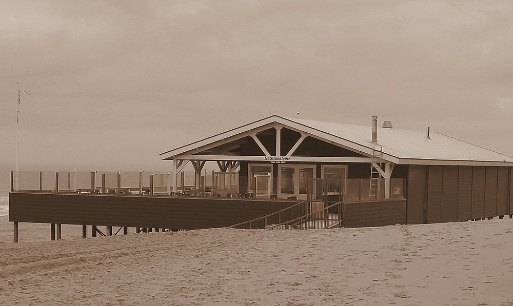 Über "Strandpavillon der Strandloper in Zeeland in Sepia"