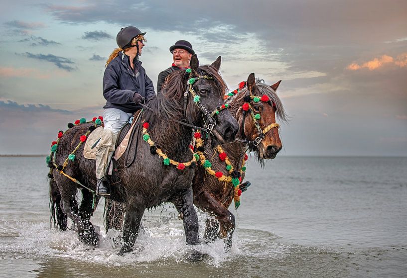Jedes Jahr im Frühling gehen die Pferde des Bauernhofs an den Strand, um ihre Füße zu waschen. Die Pferde sind wunderschön geschmückt und es gibt eine ganze Parade.