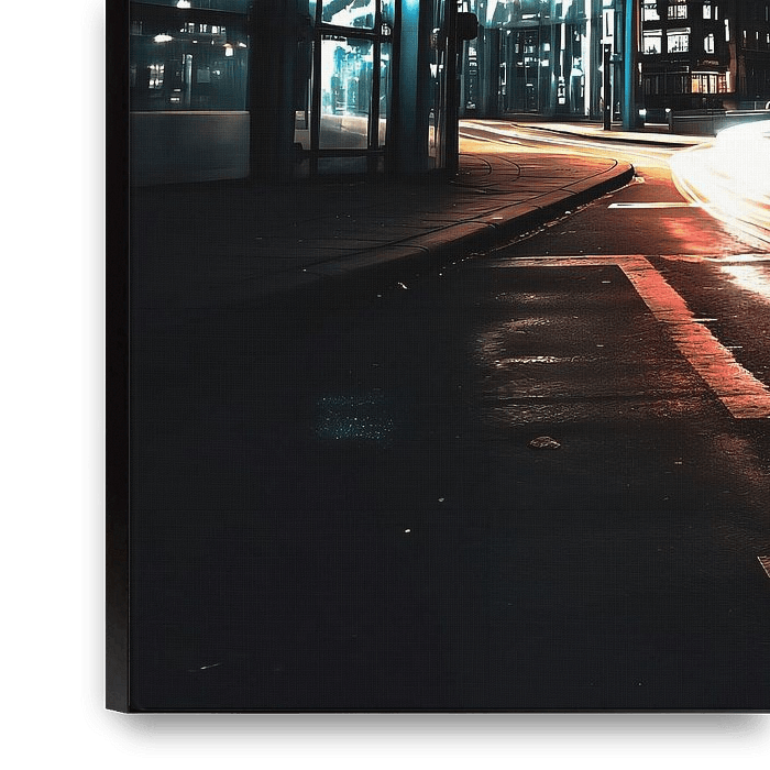 Bestelle das digitale Kunst Bild Straßenszene in der Großstadt von fernlichtsicht als Reproduktion auf Leinwand, Alu-Dibond, als Poster, Fototapete oder Acrylglasbild.