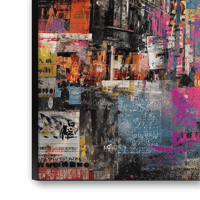 Dieses urbane Streetart-Gemälde zeigt die Silhouette einer Frau, die in leuchtenden Pink-, Gelb- und Blautönen durch die neonbeleuchteten Straßen von Tokio läuft. Das Werk wirkt lebendig und ausdrucksstark und erweckt die Dynamik der Stadt zum Leben. Perfekt für moderne, industrielle oder eklektische Interieurs und ein auffälliger Blickfang im Wohnzimmer, Arbeitszimmer oder Büro.